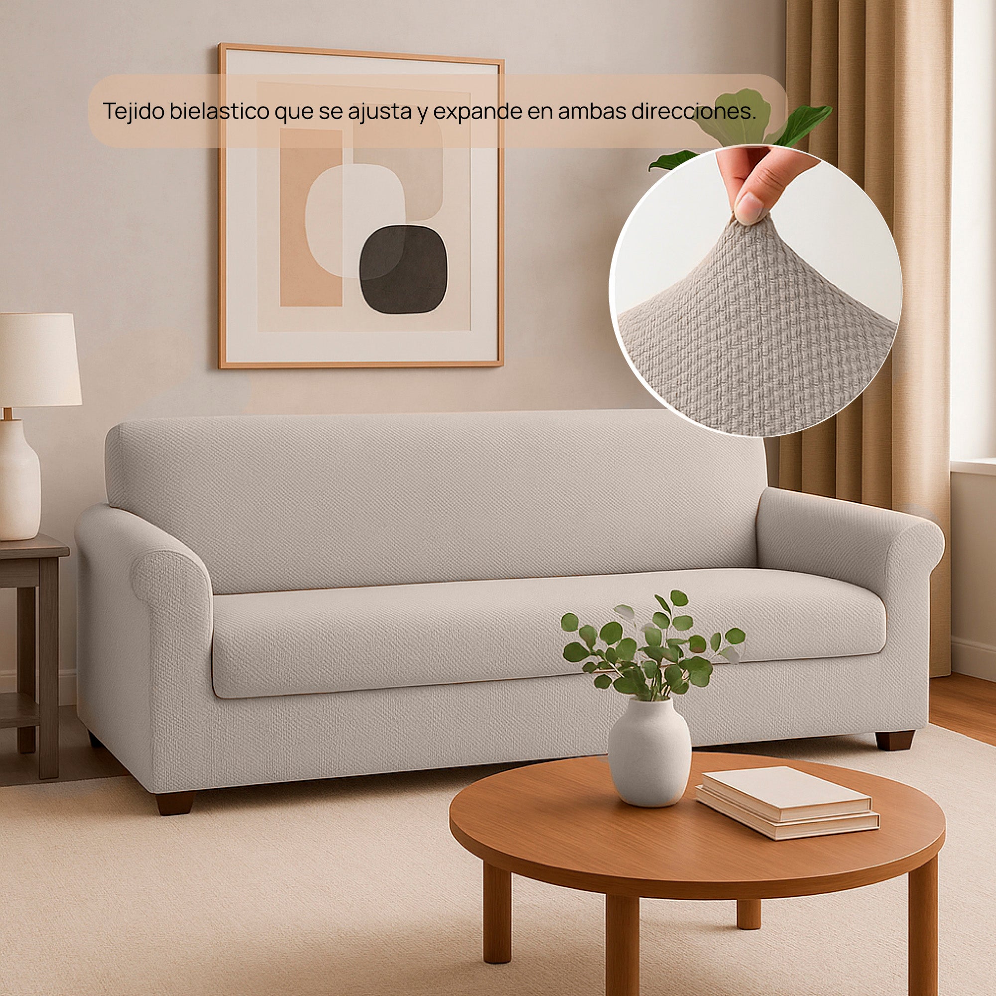 Este forro protector bielástico se adapta a lo largo y a lo ancho, ajustándose fácilmente a tu sofá y brindando una apariencia ordenada y elegante.